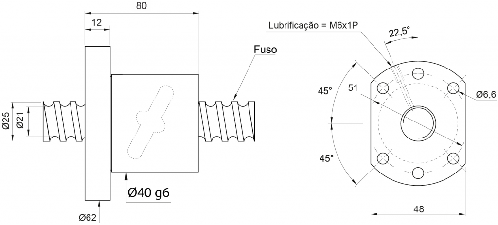 | Modelo da Porca | Diam. Fuso | Passo |