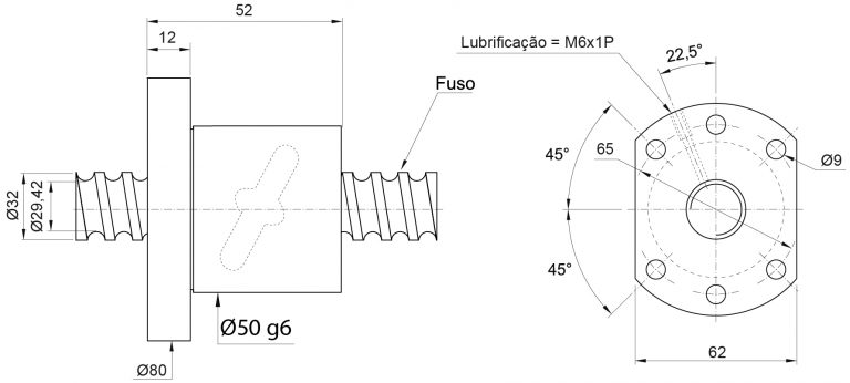 | Modelo da Porca | Diam. Fuso | Passo |