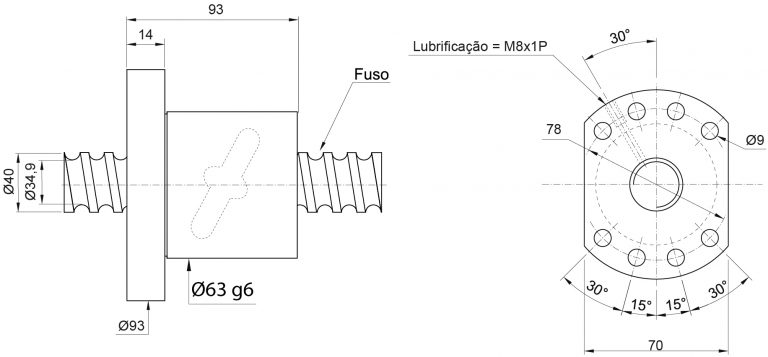 | Modelo da Porca | Diam. Fuso | Passo |